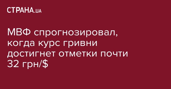 МВФ спрогнозировал, когда курс гривни достигнет отметки почти 32 грн/$