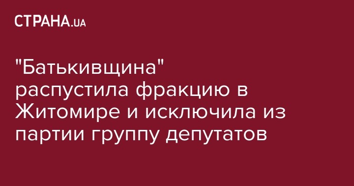 ВО "Батькивщина" распустила фракцию в Житомирском городском совете и исключила из рядов партии местных депутатов. Об этом сообщили представители Житомирской партийной организации ВО "Батькивщина" в Facebook.