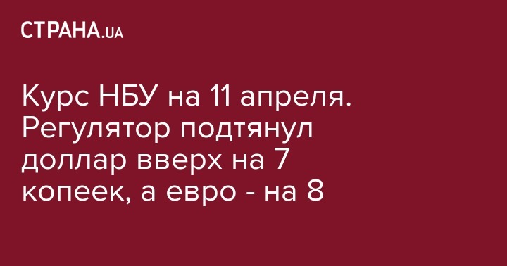 Курс НБУ на 11 апреля. Регулятор подтянул доллар вверх на 7 копеек, а евро - на 8