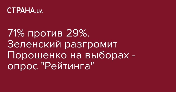 71% против 29%. Зеленский разгромит Порошенко на выборах - опрос "Рейтинга"