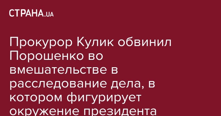 Прокурор Кулик обвинил Порошенко во вмешательстве в расследование дела, в котором фигурирует окружение президента