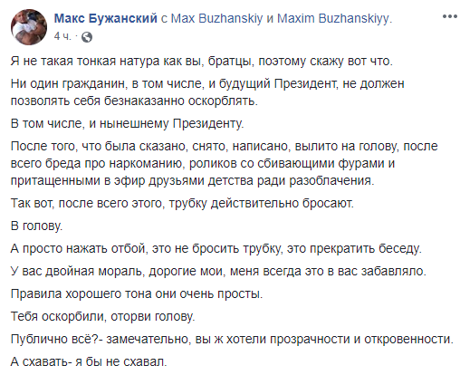 Бизнесмен и блогер Макс Бужанский прошелся по тому, бросал или не бросал трубку Зеленский и хорошо это или плохо.