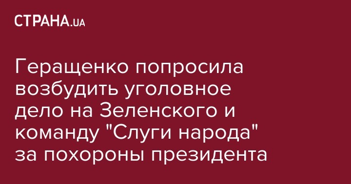 Геращенко попросила возбудить уголовное дело на Зеленского и команду "Слуги народа" за похороны президента