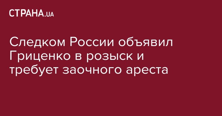 Следком России объявил Гриценко в розыск и требует заочного ареста