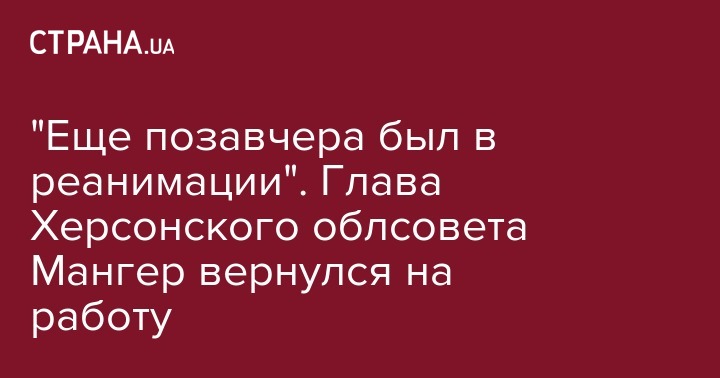 "Еще позавчера был в реанимации". Глава Херсонского облсовета Мангер вернулся на работу
