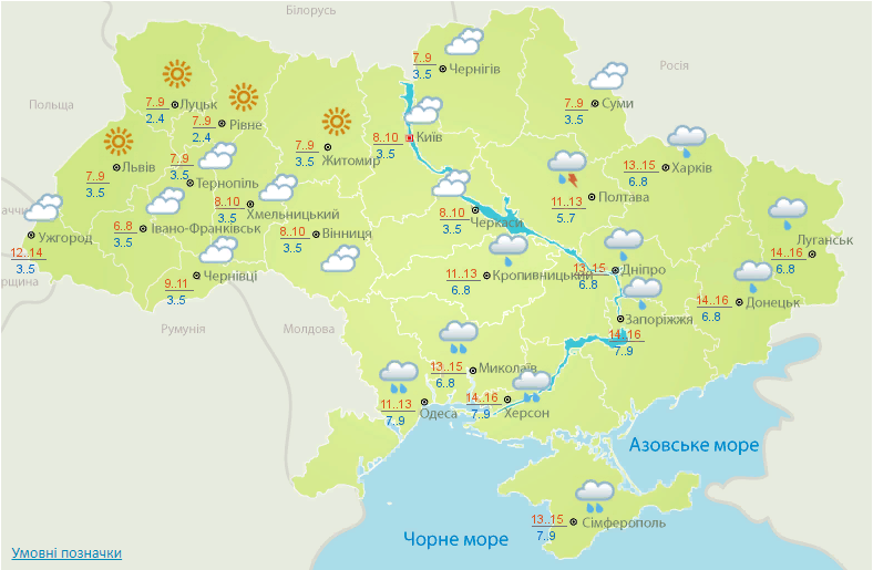 В воскресенье, 14 апреля, осадков не будет только в западных и северных областях Украины. Температура днем +9...+15, ночью +3... +8. Теплее всего на востоке.