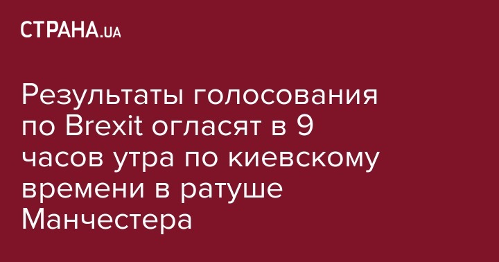 Результаты голосования по Brexit огласят в 9 часов утра по киевскому времени в ратуше Манчестера