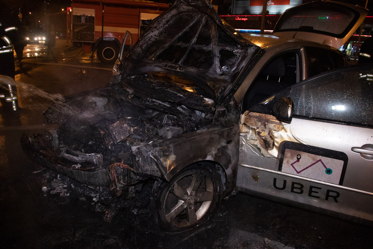 В ночь на воскресенье, 14 апреля, в Киеве на Дарницкой площади произошло ДТП с пожаром. Столкнулись автомобиль Mazda 3 (такси Uber) и Hyundai Elantra. Вызов на линию экстренных служб поступил около 04:15 утра.