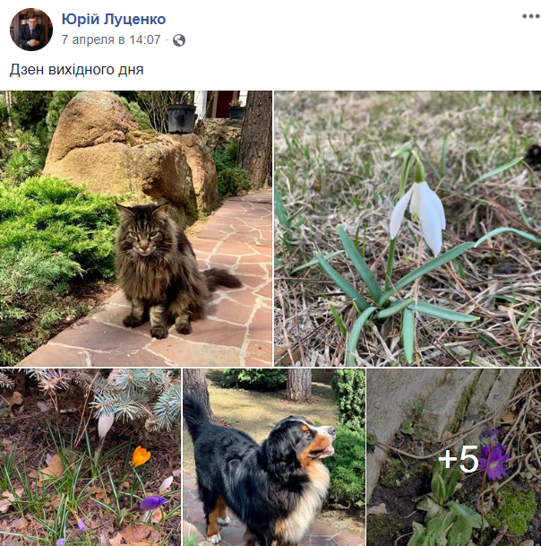 Последний в апреле пост Луценко назывался "Дзен выходного дня" и датируется 7 апреля.