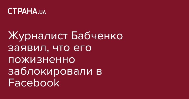 Журналиста и блогера Аркадия Бабченко, который переехал из России в Украину и активно критикует российскую власть, пожизненно заблокировали в социальной сети Facebook. Об этом сам Бабченко рассказал в эфире крымскотатарского телеканала ATR.