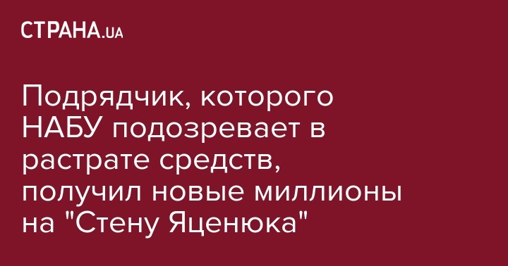 Подрядчик, которого НАБУ подозревает в растрате средств, получил новые миллионы на "Стену Яценюка"