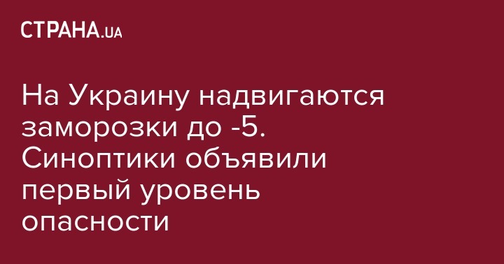 "15 апреля в западных регионах, а также в Житомирской и Киевской областях ожидаются сильные заморозки в воздухе до -3°", - говорится в сообщении. В связи с этим синоптики объявили второй уровень опасности, оранжевый. В Черниговской и Сумской областях ожидаются заморозки на поверхности почвы до -5° (и уровень опасности, желтый)", - добавили в ведомстве.