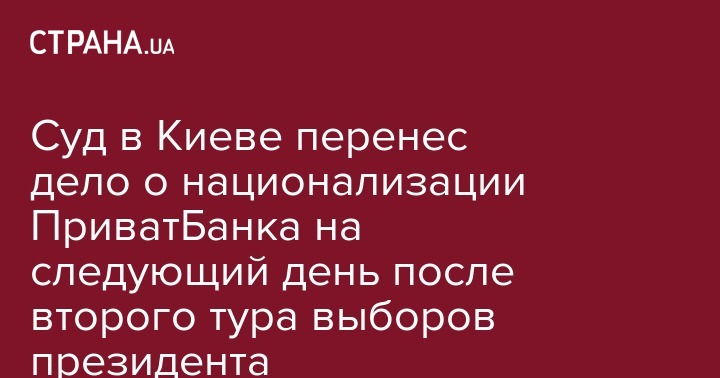 В Шестом апелляционном административном суде отложили на 22 апреля - следующий день после второго тура президентских выборов - рассмотрение апелляционной жалобы Нацбанка Украины (НБУ) на решение Окружного административного суда Киева об отмене распоряжения НБУ о проведении проверки ПриватБанка в октябре 2016 года, после которой его национализировали. Об этом сообщает "Интерфакс-Украина" ссылаясь на представителя одной из сторон спора.