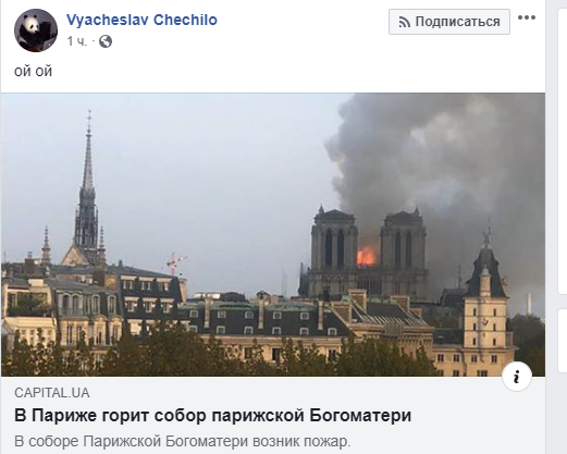 15 апреля в Париже загорелся знаменитый Собор Парижской богоматери – Нотр-Дам де Пари. Об этом сообщают французские СМИ. В Сети появилось фото и видео горящего здания. Клубы дыма и огонь охватили шпиль, а украинские пользователи Facebook вовсю обсуждают пожар, почти забыв о дебатах. "Страна" собрала информацию о том, что происходит в столице Франции, а также, что об этом думают украинцы.