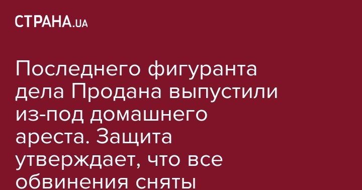 Последнего фигуранта дела Продана выпустили из-под домашнего ареста. Защита утверждает, что все обвинения сняты