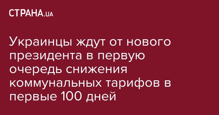 Украинцы поделились своими ожидают от нового президента в первые 100 дней его деятельности. Среди основных: снижение тарифов на коммунальные услуги, подача в парламент законопроектов о снятии неприкосновенности с нардепов, судей и главы государства, а также расследование самых резонансных коррупционных преступлений. Таковы результаты опроса, проведенного Киевским международным институтом социологии. Опрос опубликован сегодня, 16 апреля.
