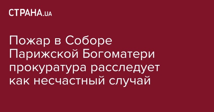 Как заявил прокурор Парижа Реми Хейц, пока нет свидетельств поджога Собора Парижской Богоматери, и следствие рассматривает инцидент как несчастный случай.