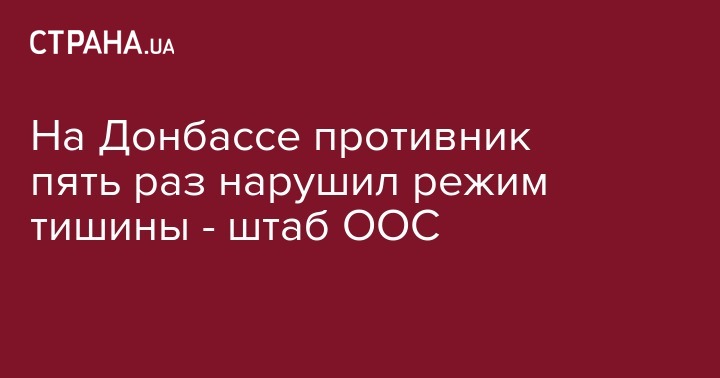 На Донбассе противник пять раз нарушил режим тишины - штаб ООС