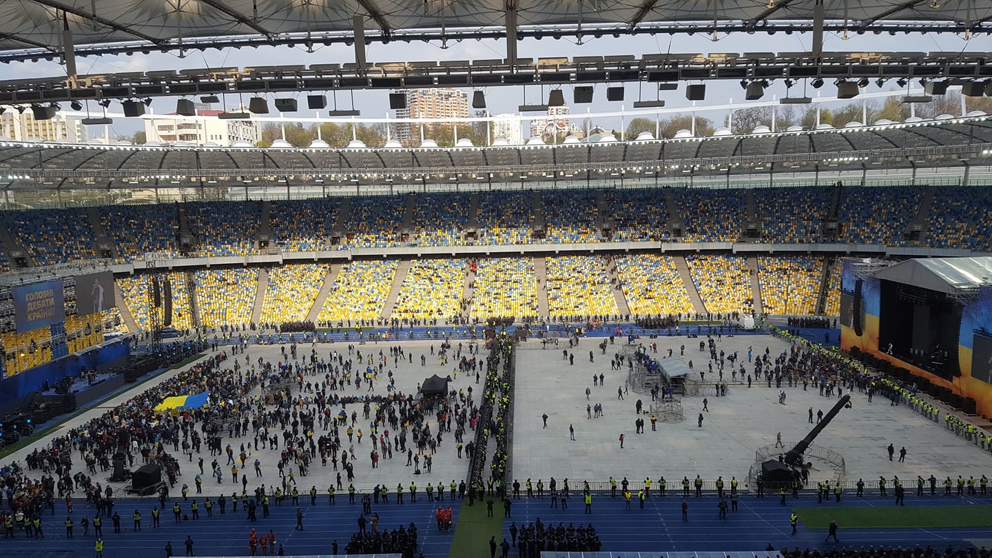 Хотя поначалу все начиналось очень бравурно. Президент в привычной для него манере театра одного актера собрал митинг на Майдане, где клеймил Зеленского малороссом и прочими плохими словами. Массовку Порошенко собрал большую. Людей для нее покупали по 400 гривен, сгоняли бюджетников, звонили со всей страны автобусами. И на стадионе их визуально было больше, чем сторонников Зеленского.