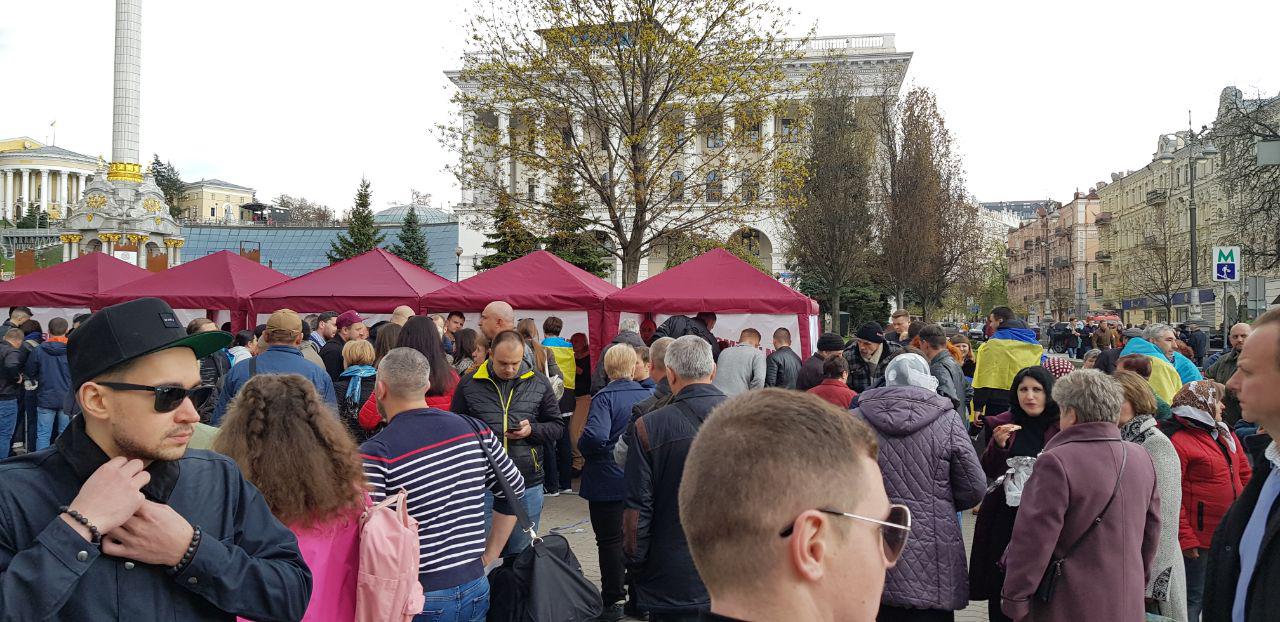 16:00 На Майдане работают пять палаток БПП. По предъявлении паспорта и проверки предварительной регистрации - выдают билеты на НСК.