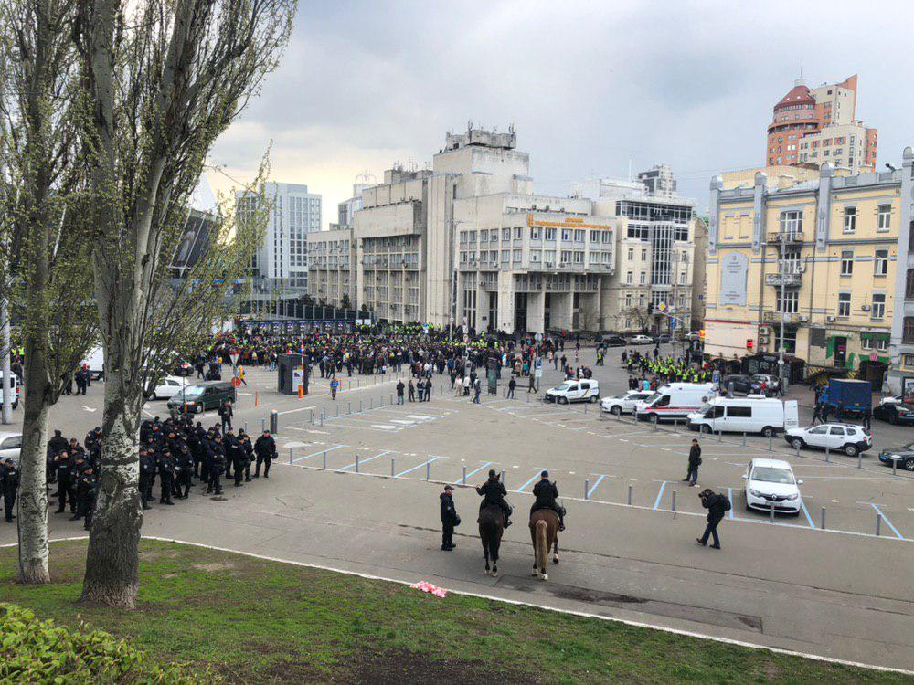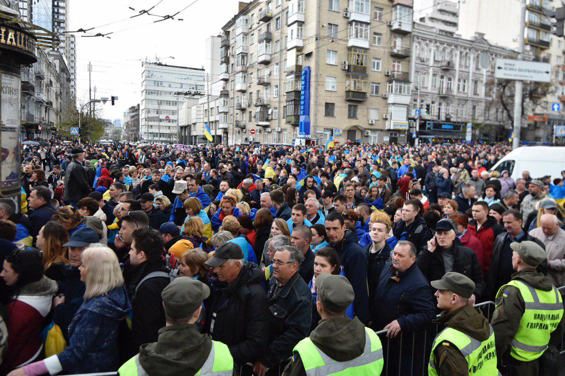 Даже массовка Порошенко заметно приуныла – хотя ее было втрое больше, чем пришло в поддержку Зеленского.