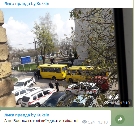 В сети появились фото автобусов, готовых к выезду из Боярка Киевской области.