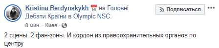 "Пропуск на стадион начнется с 16 часов, когда начнется концертная программа. Допуск в фан-зону (куда своих сторонников зовет Порошенко - прим.ред.) будет перекрыт за 10 минут до начала дебатов", - заявил начальник полиции Киева Андрей Крищенко.