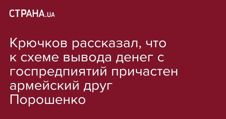 Крючков рассказал, что к схеме вывода денег с госпредпиятий причастен армейский друг Порошенко