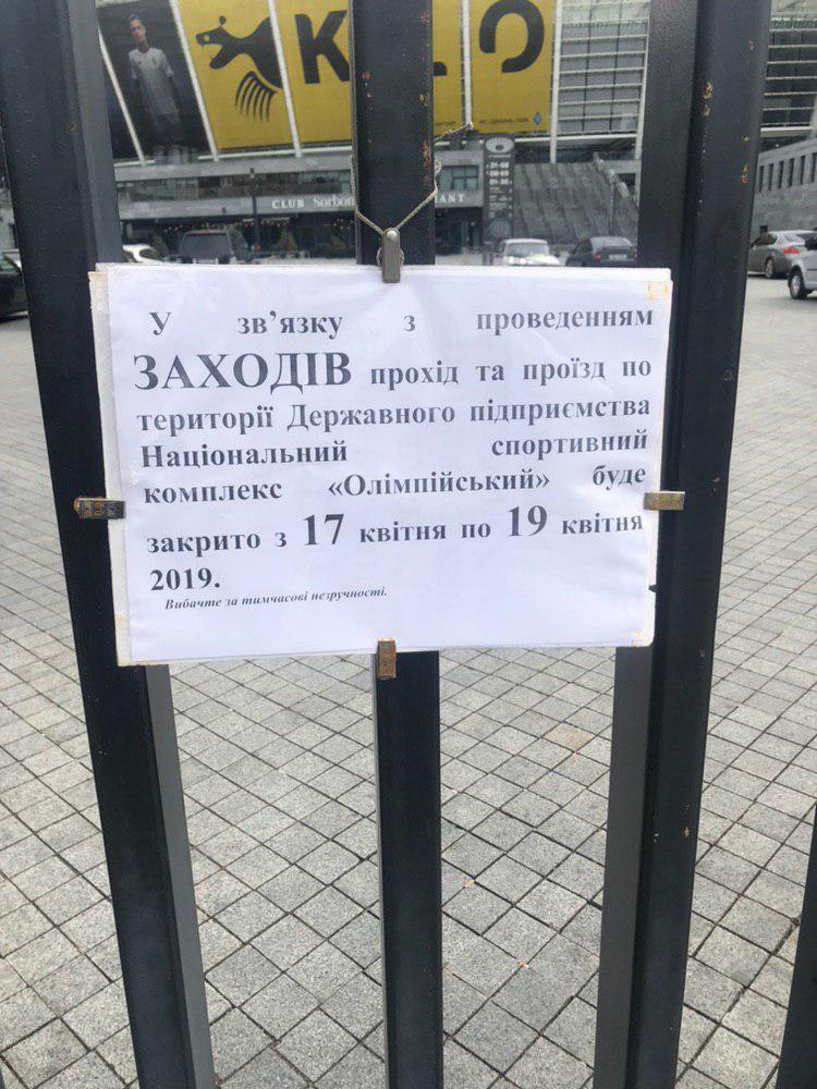 На НСК "Олимпийский" на три дня закрыли проход и проезд к территории вокруг стадиона из-за "мероприятий", то есть дебатов кандидатов в президенты Владимира Зеленского и Петра Порошенко.