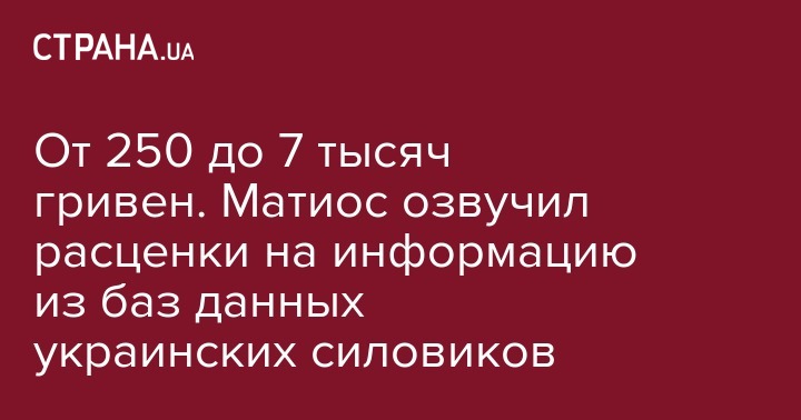 По словам Матиоса, "украинцы, осознавая, что такая информация может попасть к террористам", продавали ее по такому прайсу: