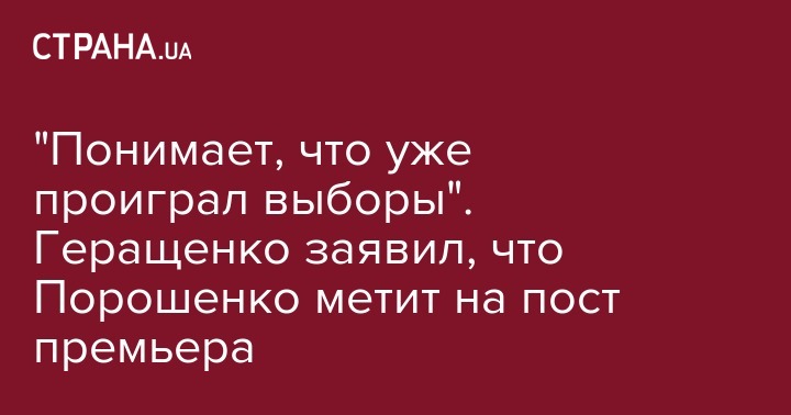 "Самым главным интересантом досрочных выборов в парламент Украины является Петр Алексеевич Порошенко. Дело в том, что Петр Порошенко, понимая, что он уже проиграл президентские выборы, наметил себе новый план - он хочет быть премьер-министром Украины", - сказал Геращенко.