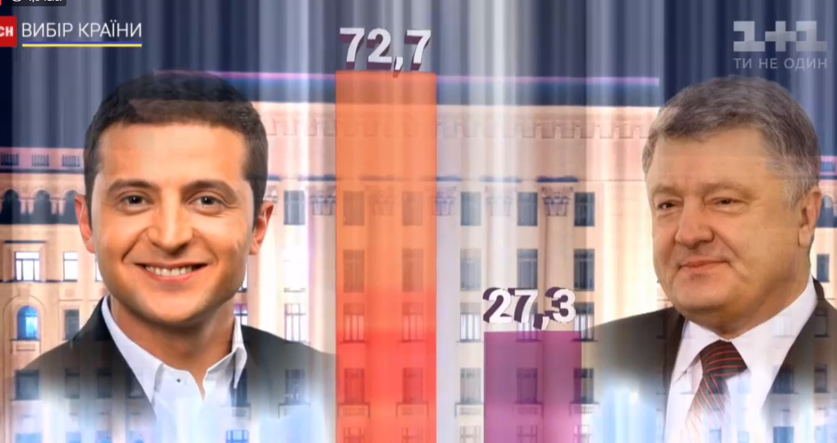 По ним Владимир Зеленский набрал 72,7%, Петр Порошенко - 27,3%.