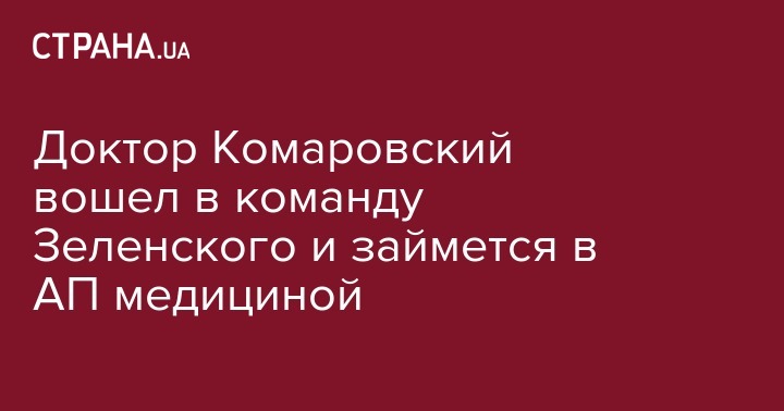 Доктор Комаровский вошел в команду Зеленского и займется в АП медициной