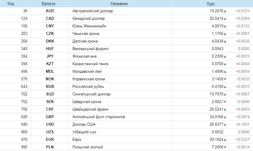 В НБУ установили курс основных валют по отношению к гривне на пятницу, 19 апреля. По сравнению с предыдущим банковским днем, НБУ ослабил официальный курс гривны по отношению к доллару до 26,83 грн/$1 по сравнению с 26,68 грн/$1. Евро вырос почти на 4 копейки, до 30,19 грн. Об этом сообщает пресс-служба регулятора.