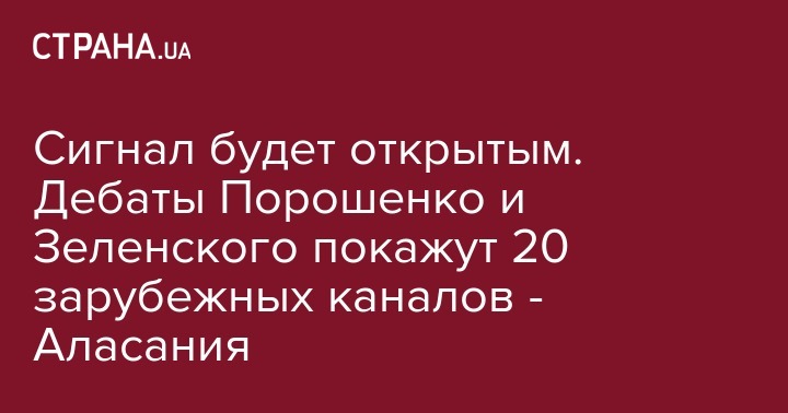 Дебаты на НСК "Олимпийский", которые выйдут в прямом эфире Общественного ТВ будут иметь открытый сигнал, который спокойно смогут принять все каналы. Об этом сообщил председатель правления Национальной общественной телерадиокомпании Украины (НОТУ) Зураб Аласания в комментарии телеканалу 112 Украина.