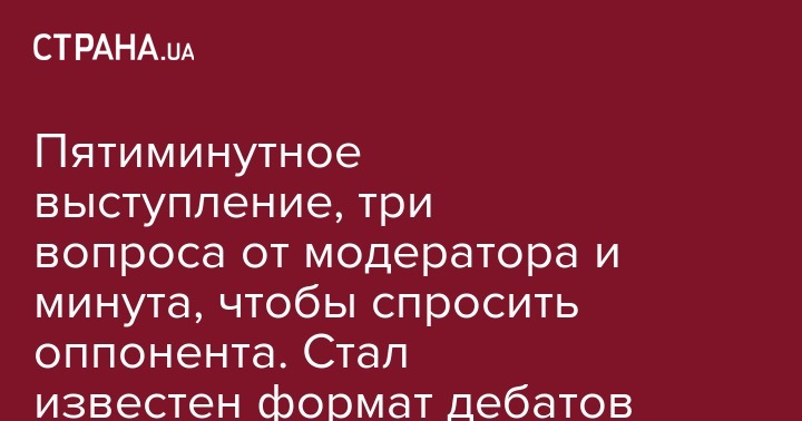 Так, дебаты начнутся с 5-минутных выступлений каждого из кандидатов, после этого каждый ответит на 3 вопроса модераторов. Кроме того, кандидатам дадут по 1 минуте, чтобы задать свой, и по 5 минут, чтобы ответить на вопрос оппонента.