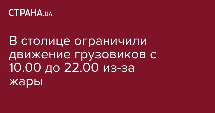 "Коммунальная корпорация "Киевавтодор" информирует, что согласно распоряжению исполнительного органа Киевского городского совета (Киевской городской государственной администрации) от 07.07.2012 № 1173 "Об ограничении движения большегрузного автотранспорта на улицах и дорогах г. Киева в связи с повышением температуры воздуха" в период, когда температура воздуха достигает более +28ºС, вводится ограничение движения по улично-дорожной сети г. Киева для тяжеловесных транспортных средств общим весом свыше 24 т и нагрузкой на ось свыше 7 т с 10:00 до 22:00", - говорится в сообщении на сайте компании.