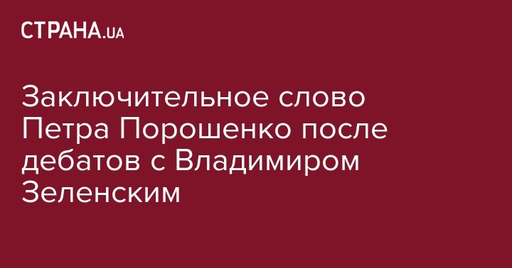 Сегодня, 19 апреля, президент Петр Порошенко выступил с заключительным словом во время дебатов с кандидатом в президенты Владимиром Зеленским на стадионе НСК "Олимпийский":