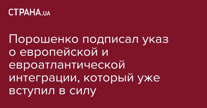 В субботу, 20 апреля, накануне второго тура выборов, президент Украины Петр Порошенко подписал указ "Вопросы европейской и евроатлантической интеграции". Об этом сообщает сайт Администрации главы государства.