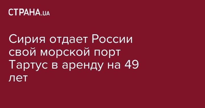 Сирия отдает России свой морской порт Тартус в аренду на 49 лет