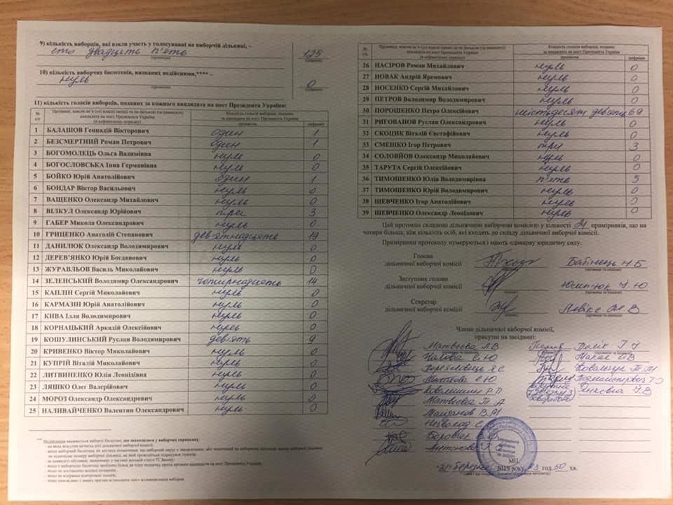 Результаты первого тура президентских выборов Украины на участке в Австралии. Фото: Facebook/ Посольство України в Австралії / Embassy of Ukraine in Australia