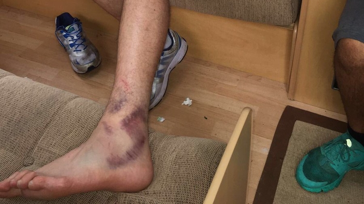 Тайсон Фьюри показывает больную ногу болельщикам. Фото: peterfury/Twitter