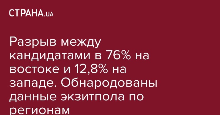 Разрыв между кандидатами в 76% на востоке и 12,8% на западе. Обнародованы данные экзитпола по регионам