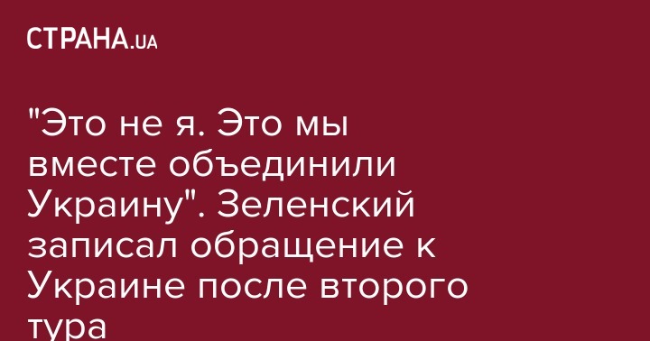 "Это не я. Это мы вместе объединили Украину". Зеленский записал обращение к Украине после второго тура