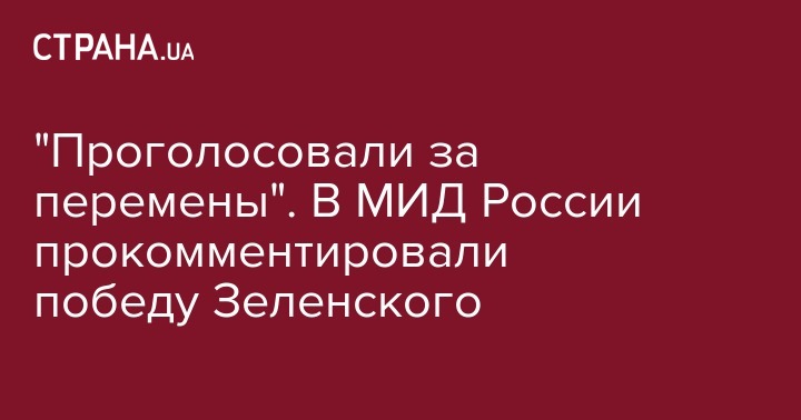 "Проголосовали за перемены". В МИД России прокомментировали победу Зеленского