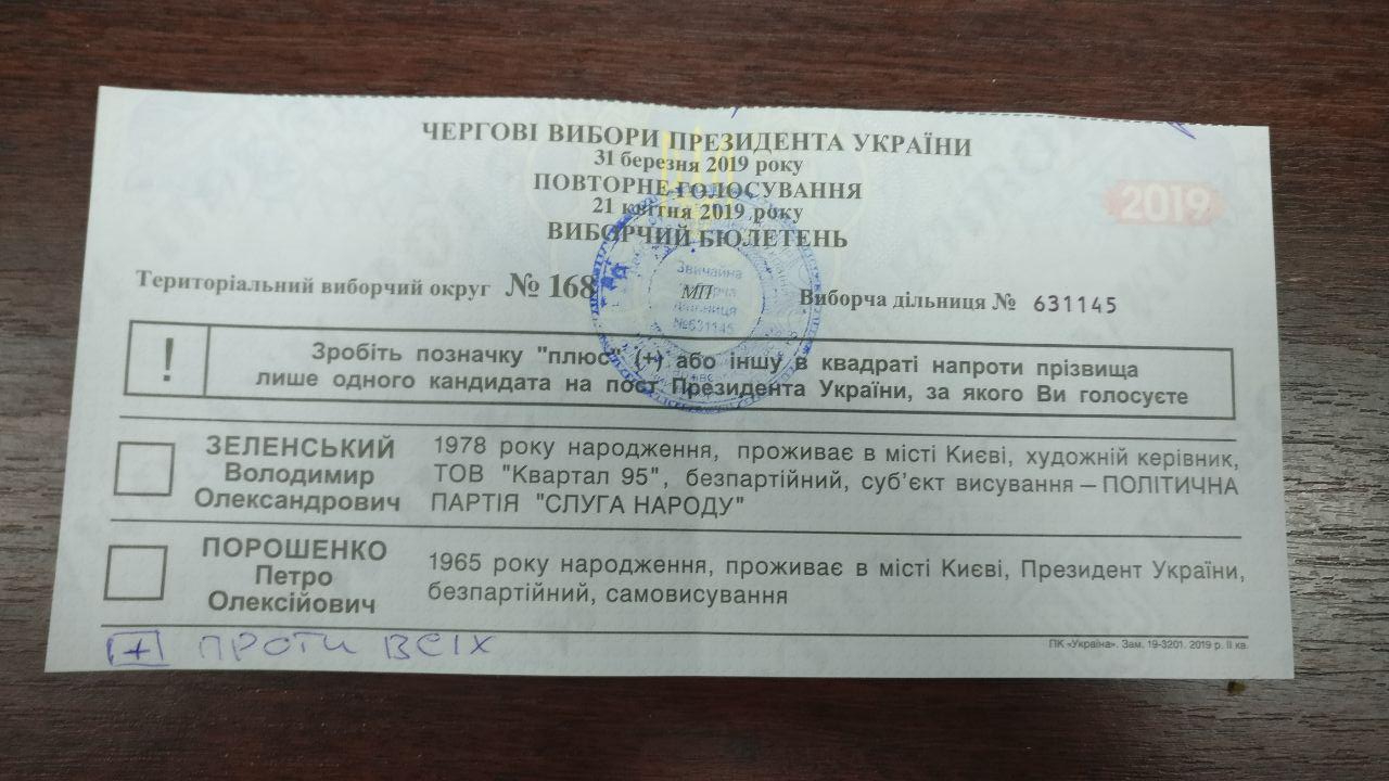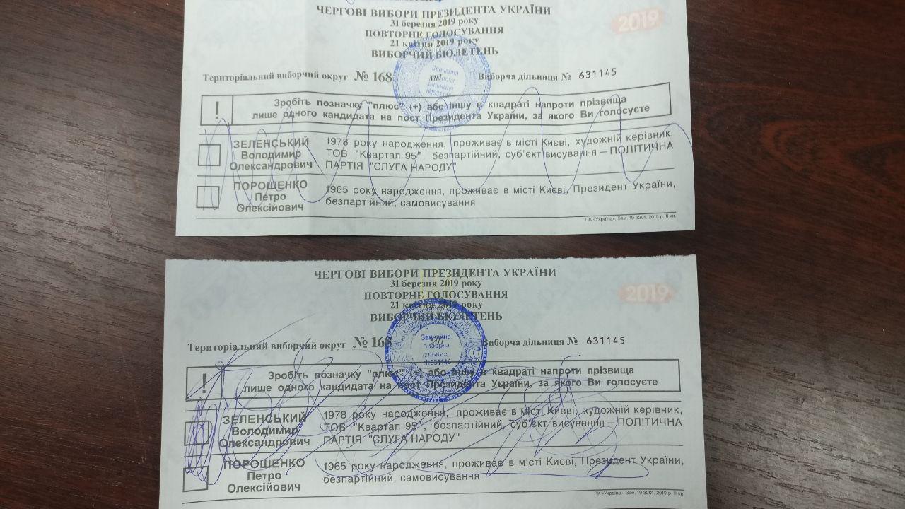 "Идите к черту", "Против всех" и коричневая субстанция. Появились фото, как украинцы портили бюллетени во втором туре выборов