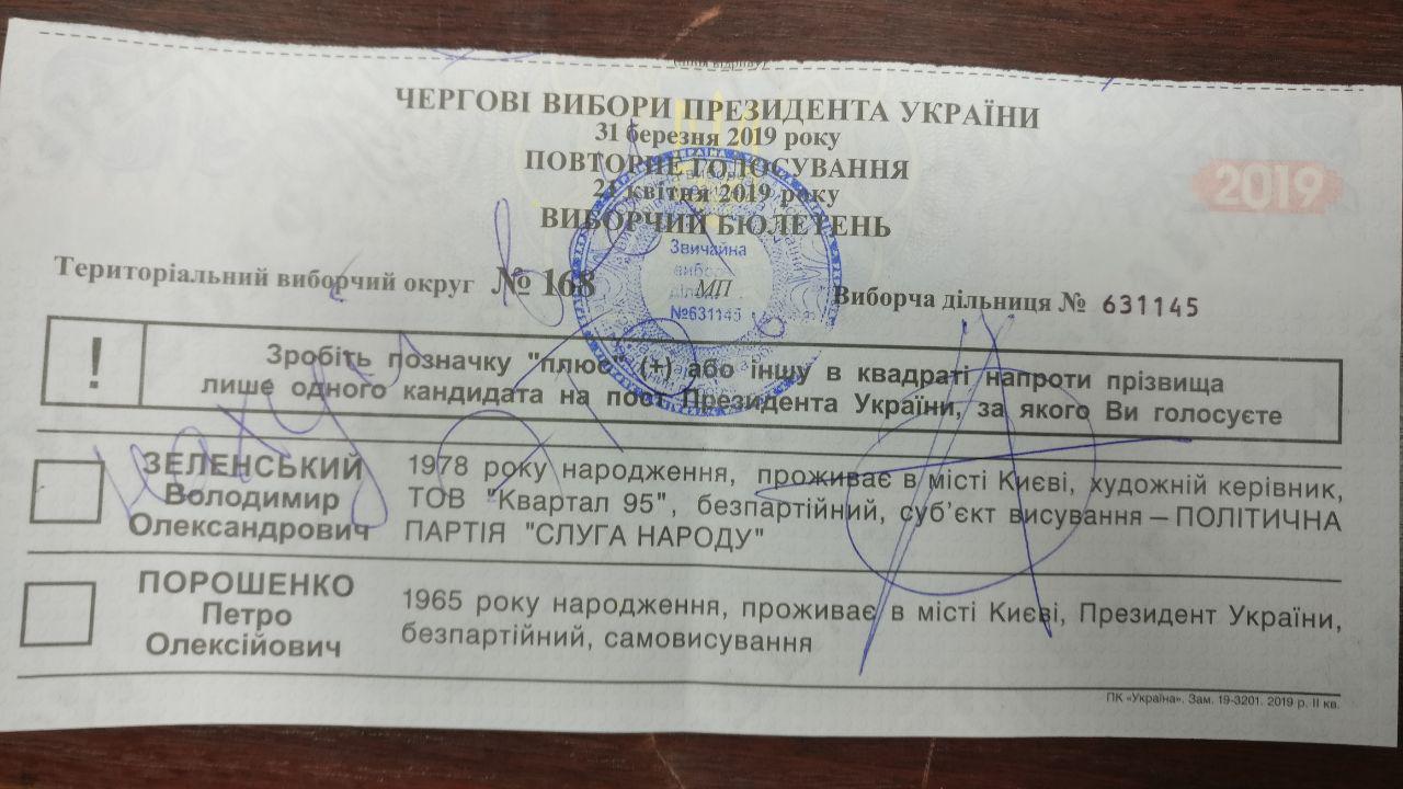 Во втором туре выборов президента Украины около 2,5% бюллетеней оказались испорчены, сообщает организация Чесно.