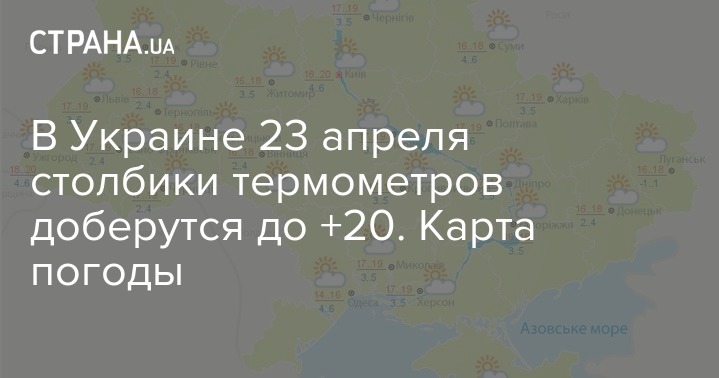 Во вторник, 23 апреля, в Укргидрометцентре ожидают погоду без осадков по всей Украине. Днем +14...+20, ночью +1...+7. В Киеве переменная облачность, без осадков, ветер юго-восточный, 5-10 м/с. Температура воздуха ночью +4…+6 градусов, днем +18…+20 градусов. По данным синоптика Натальи Диденко, в течение всей Страстной неделе в Украине будет теплеть.