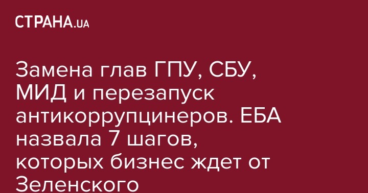 "ЕБА ожидает от президента Украины всестороннего содействия и публичной поддержки законодательных изменений, начиная с открытия рынка земли и проведения прозрачной приватизации крупных государственных предприятий с возможностью применения британского права. Заключительный седьмой шаг - обеспечение независимости рыночных регуляторов, начиная с Антимонопольного комитета и Национальной комиссии, которая совершает государственное регулирование в сферах энергетики и коммунальных услуг.