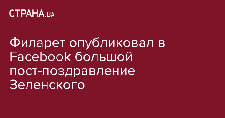 Филарет опубликовал в Facebook большой пост-поздравление Зеленского